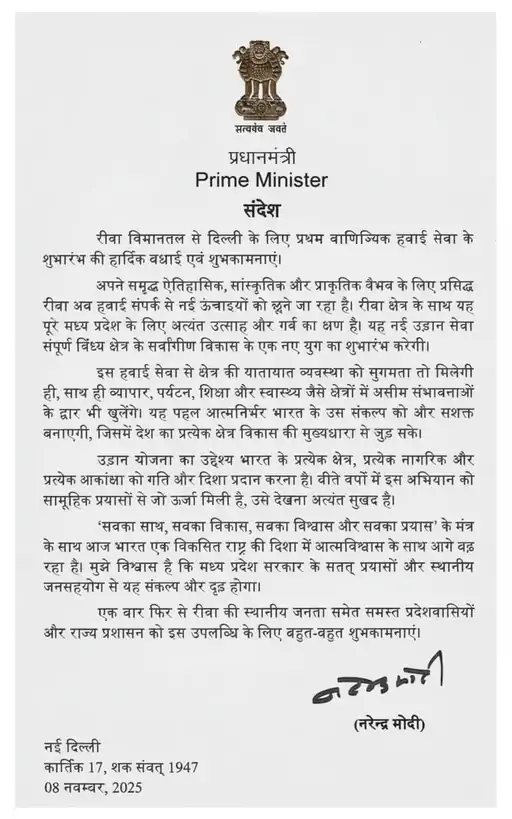 CM मोहन यादव- विंध्य अब वायु मार्ग से पूरी तरह जुड़ा मुख्यमंत्री मोहन यादव ने कहा एक समय था जब विंध्य में हवाई सेवा की कल्पना तक नहीं की जाती थी। आज रीवा की वायु सेवा औद्योगिक विकास के साथ मैहर, चित्रकूट, खजुराहो और अन्य धार्मिक पर्यटन स्थलों की कनेक्टिविटी को नई दिशा देगी।