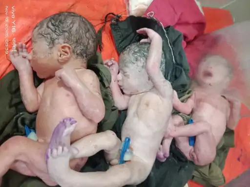 तेंदूखेड़ा ब्लॉक के हर्रई तेजगढ़ निवासी 27 वर्षीय रेवती विश्वकर्मा को मंगलवार सुबह चार बजे प्रसव पीड़ा शुरू हुई। परिजन उन्हें तेजगढ़ उपस्वास्थ्य केंद्र ले गए, लेकिन प्रसव की जटिलता को देखते हुए उन्हें जिला अस्पताल रेफर कर दिया गया। सुबह 8:30 बजे रेवती ने सामान्य प्रसव से तीनों बच्चों को जन्म दिया।